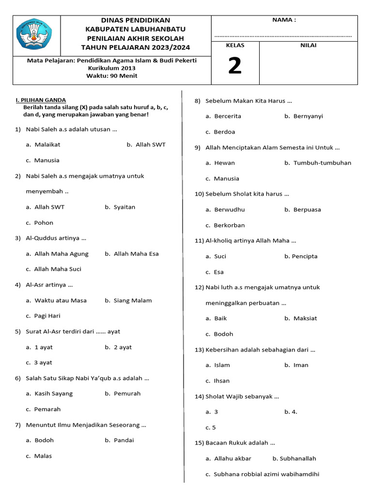 Artikel ini akan memberikan contoh format soal kelas 2 Kurikulum 2013 yang mencakup berbagai mata pelajaran dan tipe soal. Tujuannya adalah memberikan gambaran yang jelas bagi guru dalam menyusun soal yang efektif, mengukur pemahaman siswa, dan mendorong kemampuan berpikir tingkat tinggi (HOTS).